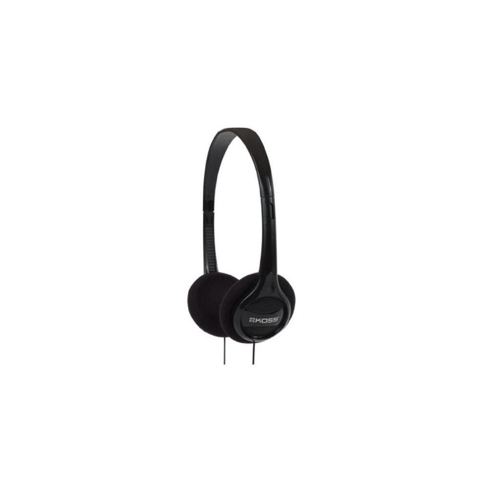 Image 1.1: Koss KPH7-10 On-Ear Portable Stereo Headphones. This image shows the compact, black on-ear headphones with a visible audio cable.