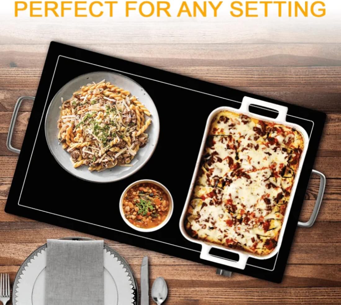 - Geschirr platzieren: Once the desired temperature is reached, place heat-safe dishes containing food directly onto the warming surface. The large surface area can accommodate multiple dishes.