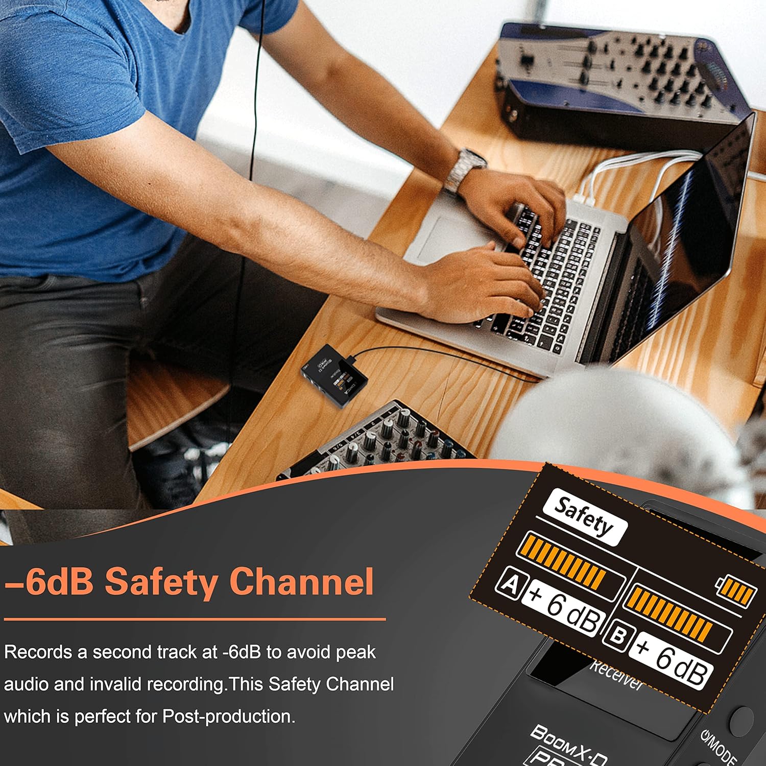 - Switch the RX unit to Safety Mode to record a backup track at a lower volume.