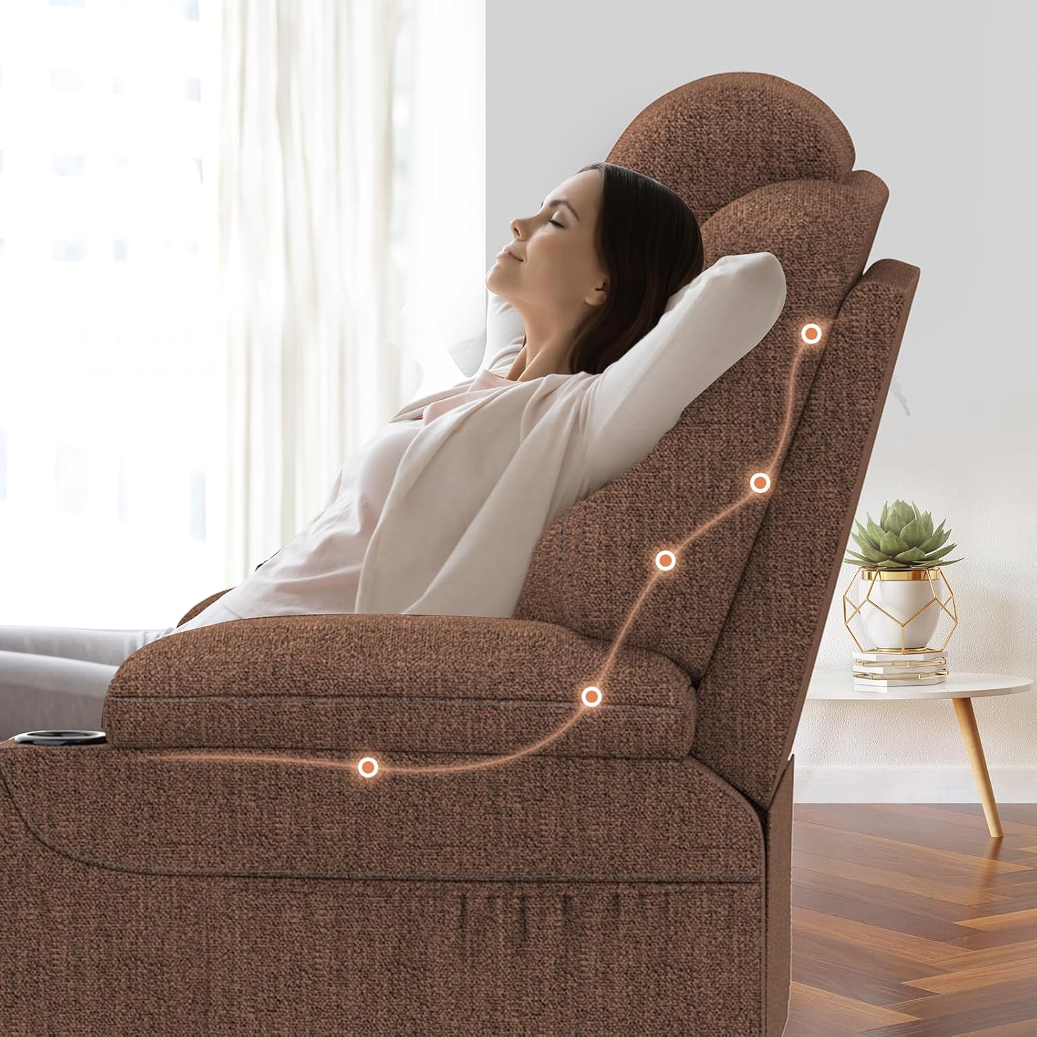 - Liegefunktion: Press the 'Recline' button to move the chair into various reclining positions, up to 140 degrees. This allows for comfortable reading, watching TV, or napping.