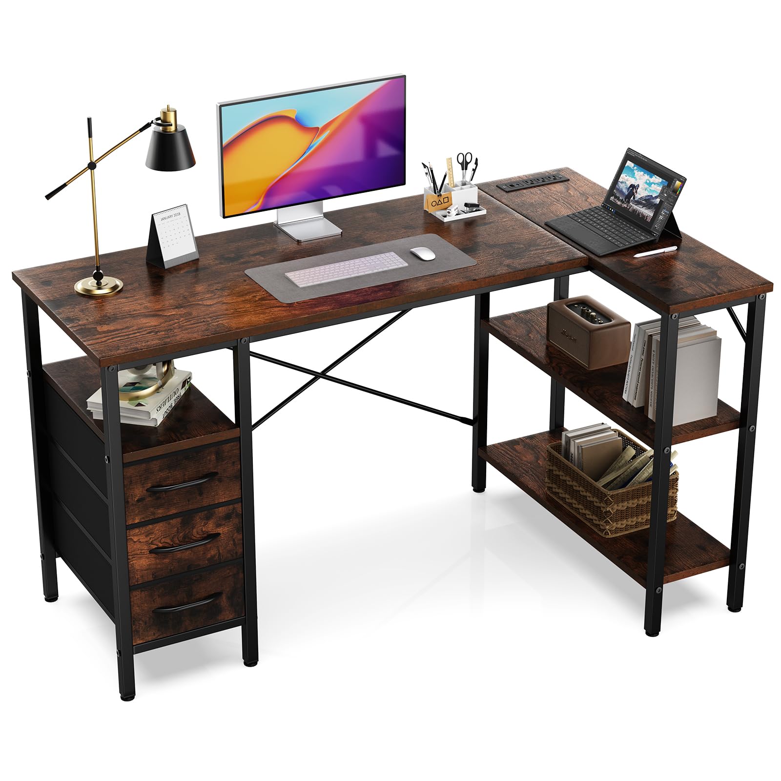 Video 1: Detailed assembly guide for the L-Shaped Desk with Shelf Drawers. This video demonstrates each step of the assembly process, from frame construction to drawer installation and power outlet integration.